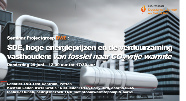 29 juni 2023 @ 12:00 – 17:30 – Het SDE++-Seminar van Projectgroep Duurzame Warmte en Elektriciteit: van fossiel naar CO₂-vrije warmte Welkom bij het SDE++-seminar van de Projectgroep Duurzame Warmte en Elektriciteit. We zijn verheugd u uit te nodigen op een inspirerende bijeenkomst, waarbij we ons richten op het actuele thema “SDE, hoge energieprijzen en de verduurzaming vasthouden: van fossiel naar (duurzame) CO₂-vrije […]
